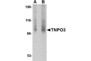 TNPO3 is a member of the importin beta/transportin family of nuclear import receptors and is specific for the essential splicing factors termed SR proteins, binding specifically and directly to the arginine/serine (RS)-rich domains of these proteins. Further experiments demonstrated that this interaction occurs only when these RS domains are phosphorylated. More recently, TNPO3 was identified as an HIV dependency factor (HDF) and that depletion of TNPO3 resulted in HIV inhibition after reverse transcription but before integration, suggesting that TNPO3 may be an important drug target in HIV treatment. At least three isoforms of TNPO3 are known to exist.Synonyms: IPO12, Imp12, Importin-12, TRN-SR, Transportin-SR