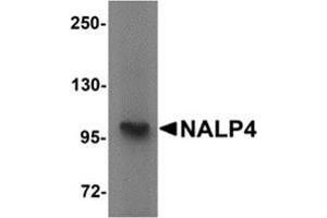 - NALP proteins include the apoptosis regulator APAF1 (apoptotic protease activating factor 1) and mammalian NOD-LRR proteins and are thought to be involved in inflammation and reproduction. NALP4, also known as PYRIN-containing APAF1-like protein 4, has a C-terminal leucine-rich repeat (LRR) region, an N-terminal Pyrin domain (PYD) followed by a NACHT domain, and a NACHT-associated domain. In transfected 293 cells, NALP4 suppressed NF-kB induction by TNF-a and IL-1b, suggesting NALP4 operates at a point of convergence in these two signaling pathways. NALP4 also suppressed NF-kB induction resulting from overexpression of several adapter proteins and protein kinases involved in these pathways, including TRAF2, TRAF6, RIP, and IRAK2, as well as the IKK-a and IKK-b, suggesting that NALP4 is critical in modulating NF-kB activity.Synonyms: LRR and PYD domains-containing protein 4, NACHT, NLRP4, PAN2, PYPAF4, RNH2