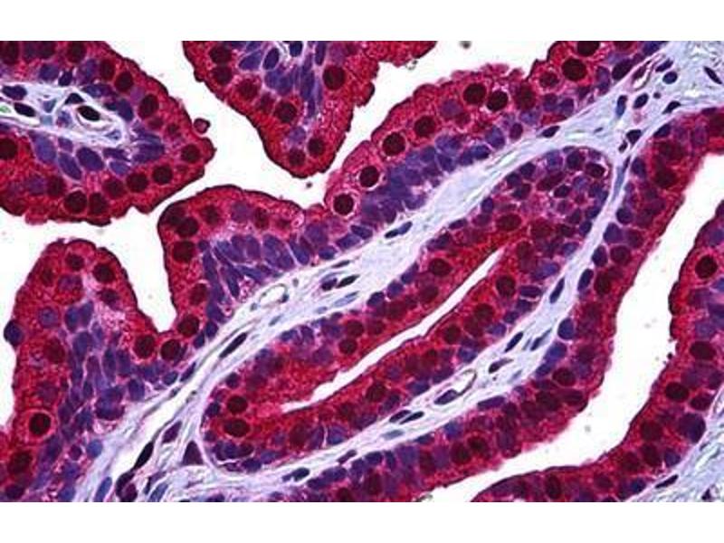 Usage: Immunohistochemistry: Formalin-fixed paraffin-embedded sections. Sandwich ELISA: Recombinant protein. Western Blot using tissue lysates and the recombinant protein used as the immunogen. -