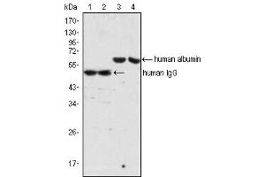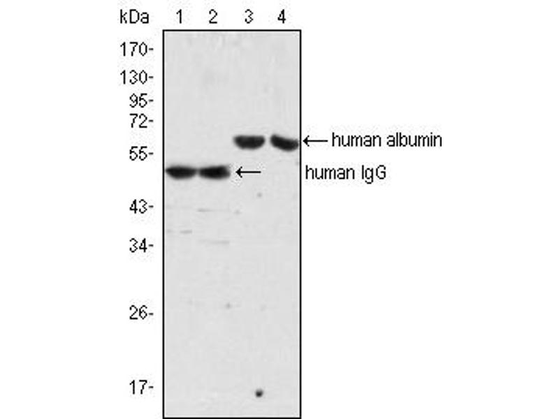 - Albumin antibody was raised in Mouse using Human sera albumin as the immunogen.