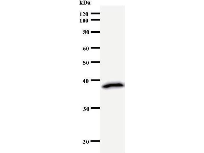 - RUVBL1 antibody in PBS (3.0 mM KCl, 1.5 mM KH2 PO4 , 140 mM NaCl, 8.0 mM Na2 HPO4 (pH 7.4)) containing 1 % bovine serum albumin (BSA) and 0.05 % sodium azide (NaN3 ).