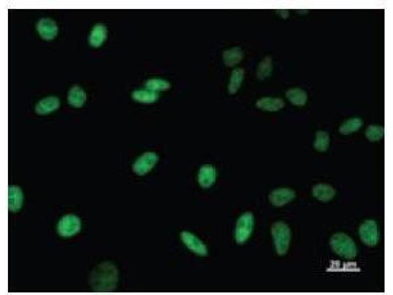 This gene encodes a nuclear protein that regulates transcriptional elongation and pre-mRNA splicing. The encoded protein interacts with the hyperphosphorylated C-terminal domain of RNA polymerase II via multiple FF domains, and with the premRNA splicing factor SF1 via a WW domain. Alternative splicing results in multiple transcripts variants encoding different isoforms. Synonyms: Monoclonal TCERG1 antibody, Anti-TCERG1 antibody, Transcription elongation regulator 1 antibody, CA150 antibody, TAF2S antibody, MGC133200 antibody.