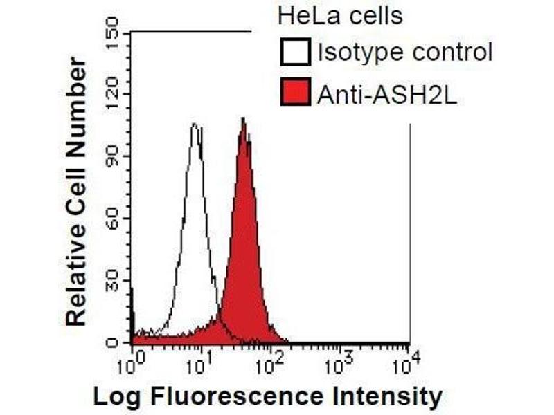 - Component of the Set1/Ash2 histone methyltransferase (HMT) complex, a complex that specifically methylates 'Lys-4' of histone H3, but not if the neighboring 'Lys-9' residue is already methylated. May function as a transcriptional regulator. May play a role in hematopoiesis. Synonyms: Monoclonal ASH2L antibody, Anti-ASH2L antibody, Ash2 histone methyltransferase complex subunit antibody, ASH2 antibody, ASH2L1 antibody, ASH2L2 antibody.