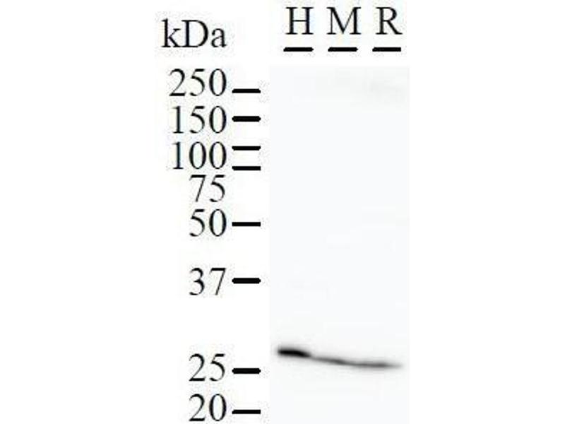 The protein encoded by this gene is a member of the immunophilin protein family, which play a role in immunoregulation and basic cellular processes involving protein folding and trafficking. This encoded protein is a cis-trans prolyl isomerase that binds the immunosuppressants FK506 and rapamycin. It has a higher affinity for rapamycin than for FK506 and thus may be an important target molecule for immunosuppression by rapamycin. Synonyms: Monoclonal FKBP3 antibody, Anti-FKBP3 antibody, FK506-binding protein 3 antibody, PPIase antibody, FKBP-25 antibody.