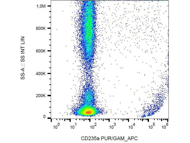 The mouse monoclonal antibody HIR2 recognizes an epitope within the N-terminal (extracellular) portion of CD235a (glycophorin A) and CD235b (glycophorin B). Its antigen is expressed on early erythroblasts, late erythroblasts, erythroblasts, mature erythrocytes and the cells of erythroid cell lines K562 and HEL, but not on all other cells.