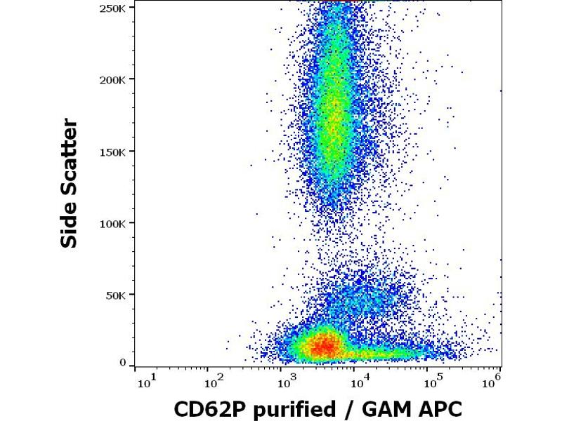 The mouse monoclonal antibody HI62P recognizes an extracellular epitope of CD62P (P-selectin), a 140 kD single chain type I transmembrane glycoprotein present in secretory alpha-granules in platelets, in Weibel-Palade bodies in endothelial cells and in megakaryocytes, it is relocated to the plasma membrane upon activation.