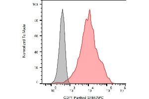 Transferrin receptor,CD71 (transferrin receptor) is a type II transmembrane glycoprotein expressed as homodimer in erythroid blood cell line and in activated leukocytes. Upon binding of holotransferrin (complex of transferrin and iron ions), CD71 is internalized by clathrin-mediated endocytosis. Acidification of endosomes by vesicular membrane proton pumps leads to dissociation of iron ions, whereas transferrin (apotransferrin) remains associated with CD71 and recycles to the cell surface, where it is released upon exposure to normal pH . CD71 is also involved in uptake of non-transferrin bound iron.,TfR1, TfR, TR, Trfr, T9, p90, TFRC