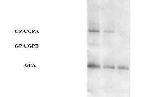 - This 131 amino acid, 36 KDa, transmembrane sialoglycoprotein spans the membrane of erythrocytes once. GpA presents its N terminus at the extracellular surface of the human red blood cell, has a single transmembrane domain and an internal cytoplasmic C terminus. GpA contributes to the expression of blood group antigen M and N specificities, which work to prevent red blood cell aggregation in circulation. Studies show that GpA is expressed early on the cell surface during erythropoiesis as pluripotent stem cells are recruited to differentiate into erythrocytes. This makes GpA a useful marker for studying the developmental biology of hematopoietic progenitor cells.Synonyms: GPA, Glycophorin-A, MN sialoglycoprotein, PAS-2, Sialoglycoprotein alpha
