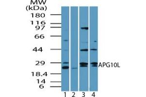 Synonyms: ATG10, Autophagy-related protein 10, Autophagy related 10, APG10-like, DKFZP586I0418, Pp12616, APG10, APG10L -