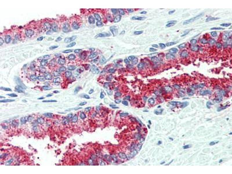Usage: Immunohistochemistry: This antibody was validated for use in immunohistochemistry on a panel of 21 formalin-fixed, paraffin-embedded (FFPE) human tissues after heat induced antigen retrieval in pH 6.0 citrate buffer. After incubation with the primary antibody, slides were incubated with biotinylated secondary antibody, followed by alkaline phosphatase-streptavidin and chromogen. The stained slides were evaluated by a pathologist to confirm staining specificity. The optimal working concentration for this antibody was determined to be 15 μg/mL. -