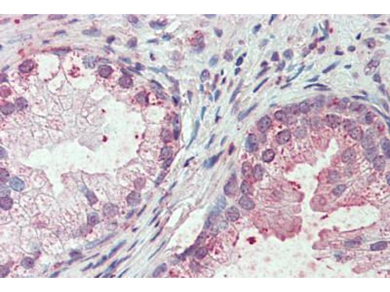 Usage: Immunohistochemistry: This antibody was validated for use in immunohistochemistry on a panel of 21 formalin-fixed, paraffin-embedded (FFPE) human tissues after heat induced antigen retrieval in pH 6.0 citrate buffer. After incubation with the primary antibody, slides were incubated with biotinylated secondary antibody, followed by alkaline phosphatase-streptavidin and chromogen. The stained slides were evaluated by a pathologist to confirm staining specificity. The optimal working concentration for this antibody was determined to be 10 μg/mL. -
