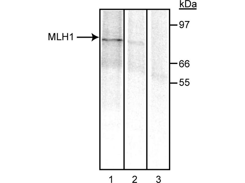 - The repair of mismatched DNA is essential to maintaining the integrity of genetic information over time. Loss of function of DNA repair enzymes can lead to an accumulation of replication errors, resulting in a mutated phenotype. DNA repair enzymes are highly conserved from bacteria to yeast to mammals. In yeast the proteins are called MutS homolog 2 (MSH2), MutL homolog (MLH1), and PMS1 which is also a homolog of MutL. MSH2 is involved in the initial recognition of mismatched nucleotides during the replication mismatch repair process. It is thought that after MSH2 binds to a mismatched DNA duplex, it is joined by a heterodimer of MLH1 and PMS1 which together help facilitate the later steps in mismatch repair. The G168-728 antibody recognizes human and mouse MLH1 (80-85 kDa). Full-length human recombinant MLH was expressed as a maltose binding-MLH fusion protein, affinity purified, and used as immunogen.