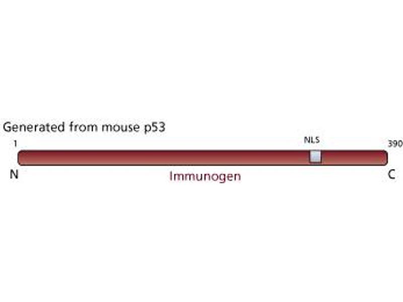 - The gene for the nuclear phosphoprotein p53 is the most commonly mutated gene yet identified in human cancers.1 Missense mutations occur in tumors of the colon, lung, breast, ovary, bladder and several other organs. The mutant p53 is overexpressed in a variety of transformed cells and it forms specific complexes with several viral oncogenes including SV40 large T, E1B from adenovirus, and E6 from human papilloma virus. Wild type p53 plays a role as a checkpoint protein for DNA damage during the G1/S-phase of the cell cycle. However, it is still unclear, whether point mutated forms of p53 are simple null mutants and/or dominant negatively acting proteins. p53 migrates at a reduced molecular weight of 53 kDa. PAb 122 recognizes mammalian p53, including mouse, rat, hamster, monkey and human p53.2 Cells from the SV40-transformed mouse cell line BALB/c 3T3 clone 4 (B4) were used as immunogen. PAb 122 was originally evaluated by ELISA, immunoprecipitation, radioimmunoassays and indirect immunofluorescence of cultured cells.