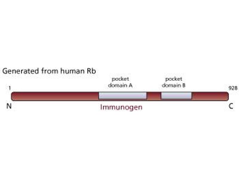 The retinoblastoma gene encodes a nuclear phosphoprotein (Rb or p110Rb) which is expressed in most normal cells of vertebrates and acts as a tumor suppressor gene product. An underphosphorylated form of Rb is mainly found in resting or fully differentiated cells, whereas the hyperphosphorylated form is present in proliferating cells. Only the underphosphorylated form of Rb binds specifically to viral oncogenes such as SV40 large T, adenoviral EIA and HPV-E7. This interaction may partially contribute to the transforming activity of these viral oncoproteins. Rb also interacts with several cyclins including A, D, and E as well as the transcriptional activator E2F. The importance of these interactions for the biological function of Rb is still being elucidated. G99-549 recognizes only the fast migrating, underphosphorylated form of Rb protein. G99-549 cross-reacts with mouse underphosphorylated Rb. The epitope has been mapped to amino acids 514-610 (box A) of human Rb. Recombinant full-length human Rb was produced in the baculovirus expression vector system (BEVS), purified and used as immunogen.