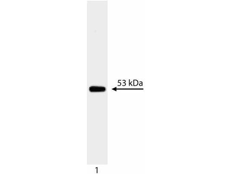 P53 is a nuclear phosphoprotein which acts as a tumor suppressor by providing a cell cycle checkpoint for DNA damage during S-phase. Mutations in wildtype p53 can indirectly alter the DNA binding and transcription factor activity of p53. By altering expression of genes normally regulated by p53, these mutations can result in both a loss of tumor suppressor function and a gain of oncogenic function. The majority of mutations in the p53 gene are missense mutations which alter the identity of an amino acid. These mutations may alter the conformation and thus increase the stability of the mutant p53 protein. p53 is expressed in all vertebrate species examined. p53 may be overexpressed in transformed cell lines, where it forms complexes with viral oncogenes including SV40 large T antigen and the adenovirus protein, E1B. p53 migrates at ~53 kDa on SDS-PAGE.