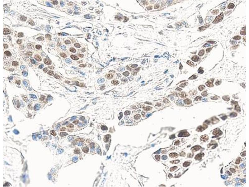 - Applications include western blot analysis (1-2 µg/ml), immunoprecipitation (1-2 µg/1 x 10^6 cells), immunofluorescence microscopy of cultured cells, immunohistochemistry of frozen (5-20 µg/ml), and antigen-unmasked paraffin-embedded tissue sections (5-20 µg/ml). Positive control cell lines include SK-BR-3 human breast carcinoma cells (ATCC HTB-30), and A431 human vulval carcinoma cells (ATCC CRL-1555). COS-7 SV40 transformed monkey kidney cells (ATCC CRL-1651) or another SV40-transformed cell line are also useful as positive controls for detecting p53. MCF-7 human breast carcinoma cells (ATCC HTB-22) are suggested as a negative control. Positive immunostaining is seen in a high proportion of breast and colon carcinomas. p53 staining is not typically detected in normal skin, brain, kidney, lung, stomach or breast tissue.