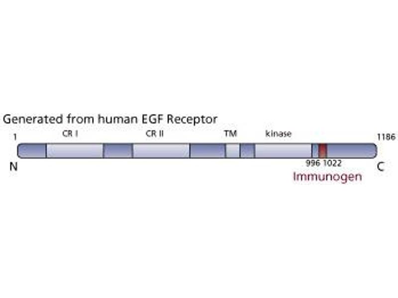 - Epidermal Growth Factor (EGF) elicits a variety of cellular responses that are initiated by EGF receptor (EGF-R) binding and activation of intrinsic tyrosine kinase activity. Following ligand binding, EGF receptor is autophosphorylated and, in turn, phosphorylates several other endogenous proteins including phospholipase Cgamma. These events initiate a number of intracellular responses that include increased levels of intracellular Ca2+ and transient expression of the nuclear oncogene products c-Myc and c-Fos. This antibody is routinely tested by western blot analysis.