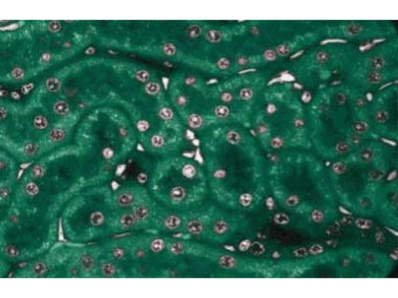 Reversible protein phosphorylation is critical for progression through the cell cycle and mitosis. In Aspergillus nidulans, the nima gene (never in mitosis) encodes a protein kinase that is essential for mitosis. Three human genes (nek1, 2, and 3 [Nima-related kinase]) with significant homology to the A. nidulans nima have been reported. The nek2 gene encodes a protein of 445 amino acids and, like its fungal homolog, its expression is regulated throughout the cell cycle. In Hela cells, Nek2 activity and expression are low during M and G1 phases of the cell cycle. However, both parameters increase during S phase and mitosis. In addition, Nek2 phosphorylates protein substrates exclusively at serine and threonine residues. Thus, like its fungal homolog, Nek2 may be a crucial element in controlling the cell's entry into S phase and mitosis. This antibody is routinely tested by western blot analysis.