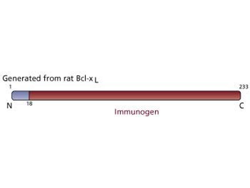 - Bcl-x is related to the Bcl-2 protein and can function independently of Bcl-2 in regulating apoptosis (programmed cell death). The bcl-x transcript is expressed in a number of tissues, with the highest levels in the lymphoid and central nervous systems. Two distinct cDNA species, bcl-xL and bcl-xS, have been observed and appear to arise from alternate 5' splice sites located within the first coding exon of the bcl-x gene. Bcl-xL is composed of 233 amino acids and is similar in size and structure to Bcl-2. The Bcl-xS polypeptide shows a deletion of 63 amino acids which consist of the region of Bcl-xL with the highest degree of amino acid identity to Bcl-2. Like Bcl-2, Bcl-xL inhibits cell death upon growth factor withdrawal when transfected into an IL-3-dependent cell line. However, Bcl-xS inhibits Bcl-2 mediated cell survival.