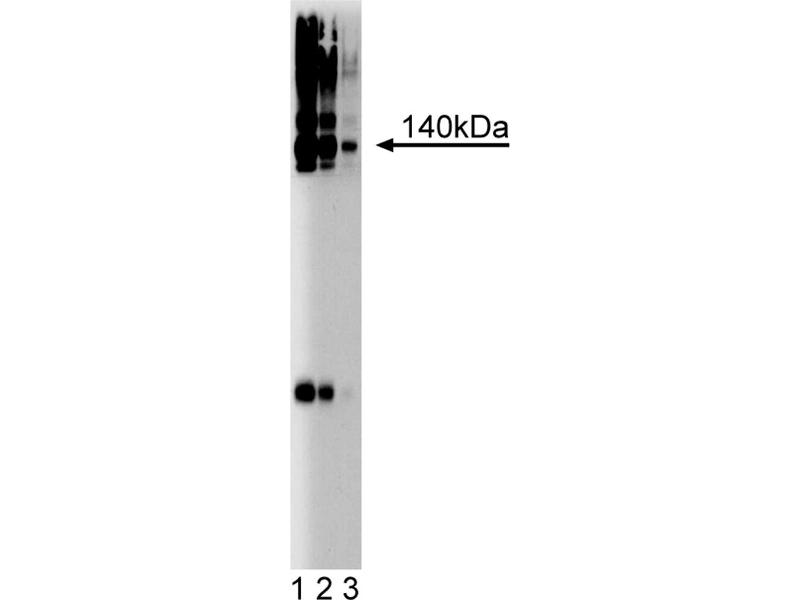 - Neural tissue expresses a variety of cell surface heparan sulfate and extracellular chondroitin sulfate containing proteoglycans. Brevican, a chondroitin sulfate proteoglycan, is a member of the lectican family. Other members of this family are aggrecan, versican, and neurocan. These proteins are either heparan sulfate or keratan sulfate containing glycosylphosphatidylinositol (GPI) anchored or membrane spanning proteoglycans, or soluble chondroitin sulfate containing proteoglycans. Brevican exists as either a soluble or GPI-anchored plasma membrane protein. Brevican contains the shortest core protein of any of the family members. In addition, it is characterized by chondroitin sulfate chains, an N-terminal hyaluronic acid-binding domain (HA), an epidermal growth factor-like (EGF) repeat, and lectin-like and complement regulatory protein-like domains in its C-terminal region. Primary cerebellar astrocytes are the major site for mRNA expression and little, if any, is found in neurons. Although there is an 80 kDa N-terminal truncated form, full length brevican can be up to 145 kDa. Brevican is thought to play a role in the terminal differentiation and regulation of the adult nervous system. This antibody is routinely tested by western blot analysis.