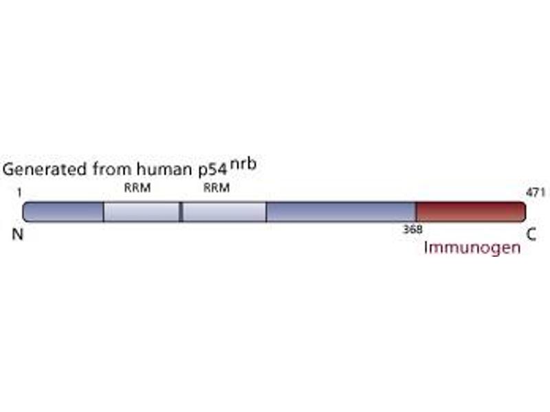 - Splicing, the removal of introns from pre-mRNA, is mediated by spliceosomal complexes that contain multiple snRNPs and a number of non-snRNP splicing factors, such as hPRP17 and hPRP18. p54 [nrb] (nuclear RNA-binding protein, 54 kDa) is a non-snRNP RNA splicing factor. It binds and enhances the activity of topoisomerase I, the enzyme that nicks DNA to relieve torsional stress during replication and transcription. p54 [nrb] is the the human homolog of mouse NonO and bovine IPEB. The N-terminal half of p54 [nrb] contains two RNA recognition motifs (RRMs), that allow it to bind single stranded RNA. These motifs are included in a region that is 71% homologous with the human splicing factor PSF and 42% homologous with the Drosophila puff-specific protein BJ6. In addition to its role in RNA splicing, p54 [nrb] functions as a DNA transcription factor in multiple cell types. The N-terminal portion of p54 [nrb] also mediates its interaction with DNA. The ability of p54 [nrb] to bind DNA, but not RNA, is thought to require post-translational modification. Thus, p54 [nrb] can function as either an RNA splicing factor or a DNA transcription factor in a post-translational-dependent manner.