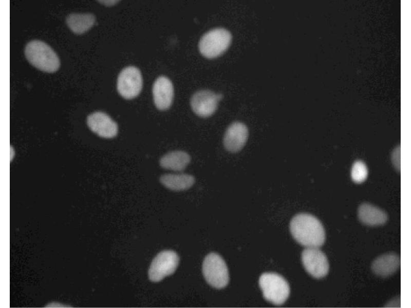 - Eukaryotic DNA topoisomerase II, a ubiquitous ATP-dependent type II topoisomerase, is an essential nuclear enzyme in DNA replication and transcription, chromatin segregation, and cell cycle progression. Topoisomerases transiently break a pair of complementary strands in double-stranded DNA to form a gate for the passage of duplex DNA. Two isoforms of DNA topoisomerase II have been identified: topo IIalpha and topo IIß. These exhibit a high degree of homology, except for some divergence in the C-terminal region. Both contain multiple bipartite nuclear localization sequences (NLS) that mediate their subnuclear localization. Topo IIalpha levels rise during late S phase and peak in G2-M, whereas topo IIß levels remain constant throughout the cell cycle. In addition, topo IIalpha is expressed in proliferating cells, while topo IIß is expressed in a wide range of tissues. Although the exact role of these two isoforms during cell proliferation is not known, the differences in cellular expression implicate different physiological roles. Both isoforms may also be important targets for anticancer agents that exert cytotoxicity in proliferating cells via stabilization of a topo II-DNA complex. This antibody is routinely tested by Western blot analysis and immunofluorescent imaging.