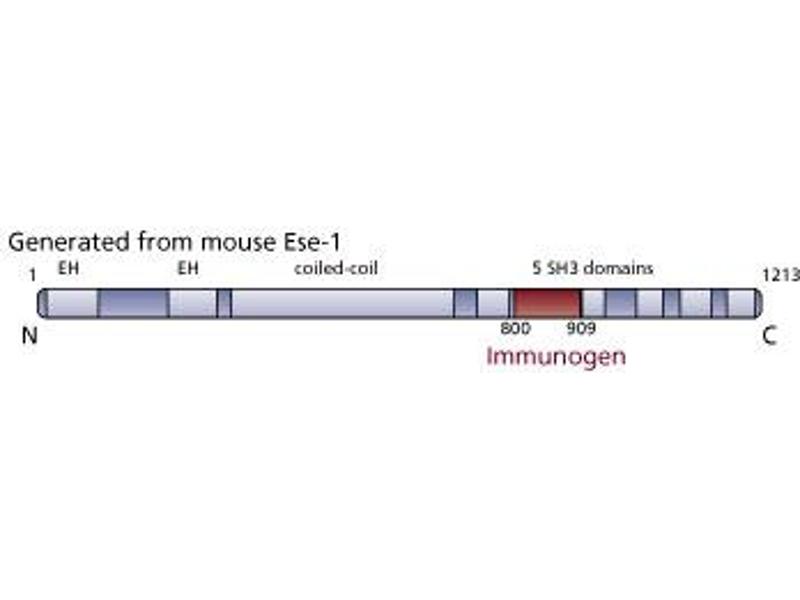 - ESE-1 (epithelium-specific, EH domain and SH3 domain regulator of endocytosis) contains two N-terminal EH (Ep15 homology) domains, a central coiled-coil domain, and five C-terminal SH3 domains. ESE-1 is also known as the adaptor protein Intersectin. Intersectin constitutively associates with Eps15 to form a complex that is analogous to the yeast Pan1p-End3p complex, which is required for endocytosis and organization of the actin cytoskeleton. The EH, coiled-coil, and SH3 domains of intersectin bind epsin family proteins, SNAP25 and SNAP23, and dynamin, respectively. Thus, intersectin functions in complex with Eps15 to regulate endocytosis by linking components of the endocytic machinery.