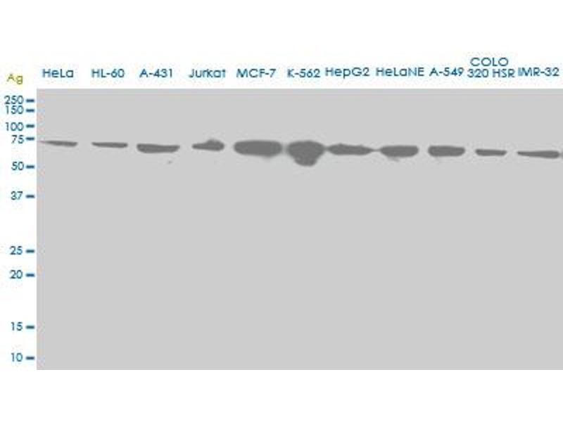 NRF1 适用: 人 WB, ELISA, IHC (p), RNAi 宿主: 小鼠 Monoclonal 2F9 unconjugated