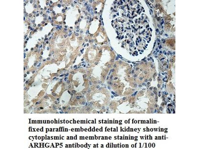 Rho GTPase activating protein 5 negatively regulates RHO GTPases, a family which may mediate cytoskeleton changes by stimulating the hydrolysis of bound GTP. Two transcript variants encoding different isoforms have been found for this gene. [provided by RefSeq, Jul 2008].