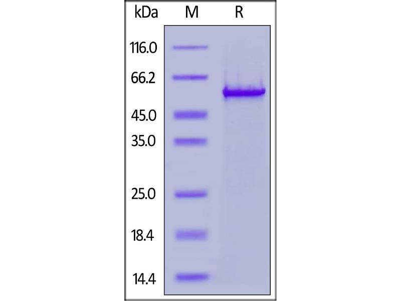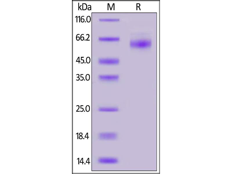 The purity of the protein is greater than 85 % as determined by SDS-PAGE and Coomassie blue staining.