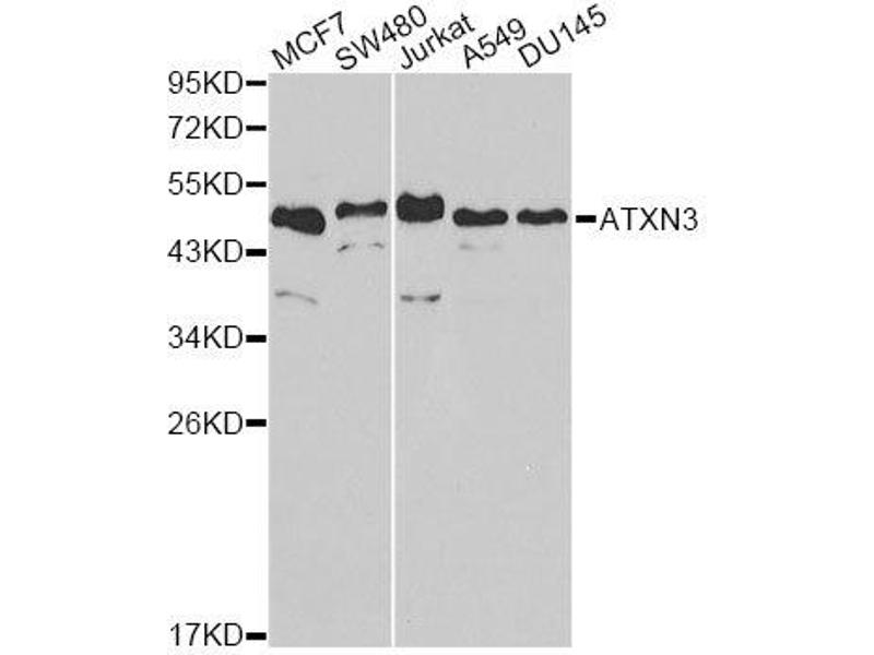 ATXN3 适用: 人 WB, IHC (p), FACS, EIA 宿主: 兔 Polyclonal unconjugated