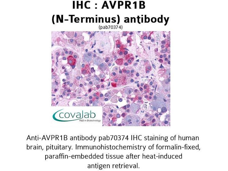 The protein encoded by this gene acts as receptor for arginine vasopressin. This receptor belongs to the subfamily of G-protein coupled receptors which includes AVPR1A, V2R and OXT receptors. Its activity is mediated by G proteins which stimulate a phosphatidylinositol-calcium second messenger system. The receptor is primarily located in the anterior pituitary, where it stimulates ACTH release. It is expressed at high levels in ACTH-secreting pituitary adenomas as well as in bronchial carcinoids responsible for the ectopic ACTH syndrome. A spliced antisense transcript of this gene has been reported but its function is not known. [provided by RefSeq, Jul 2008].