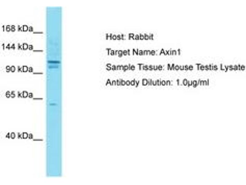 This gene encodes a cytoplasmic protein which contains a regulation of G-protein signaling (RGS) domain and a dishevelled and axin (DIX) domain. The encoded protein interacts with adenomatosis polyposis coli, catenin beta-1, glycogen synthase kinase 3 beta, protein phosphate 2, and itself. This protein functions as a negative regulator of the wingless-type MMTV integration site family, member 1 (WNT) signaling pathway and can induce apoptosis. The crystal structure of a portion of this protein, alone and in a complex with other proteins, has been resolved. Mutations in this gene have been associated with hepatocellular carcinoma, hepatoblastomas, ovarian endometriod adenocarcinomas, and medullablastomas. Two transcript variants encoding distinct isoforms have been identified for this gene. [provided by RefSeq, Dec 2010].