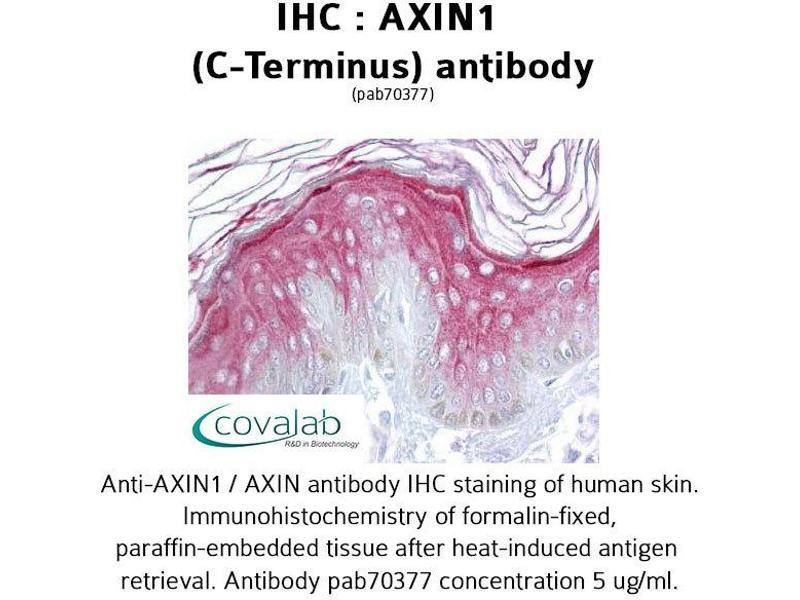 This gene encodes a cytoplasmic protein which contains a regulation of G-protein signaling (RGS) domain and a dishevelled and axin (DIX) domain. The encoded protein interacts with adenomatosis polyposis coli, catenin beta-1, glycogen synthase kinase 3 beta, protein phosphate 2, and itself. This protein functions as a negative regulator of the wingless-type MMTV integration site family, member 1 (WNT) signaling pathway and can induce apoptosis. The crystal structure of a portion of this protein, alone and in a complex with other proteins, has been resolved. Mutations in this gene have been associated with hepatocellular carcinoma, hepatoblastomas, ovarian endometriod adenocarcinomas, and medullablastomas. Two transcript variants encoding distinct isoforms have been identified for this gene. [provided by RefSeq, Dec 2010].