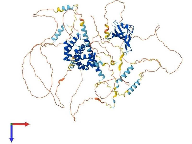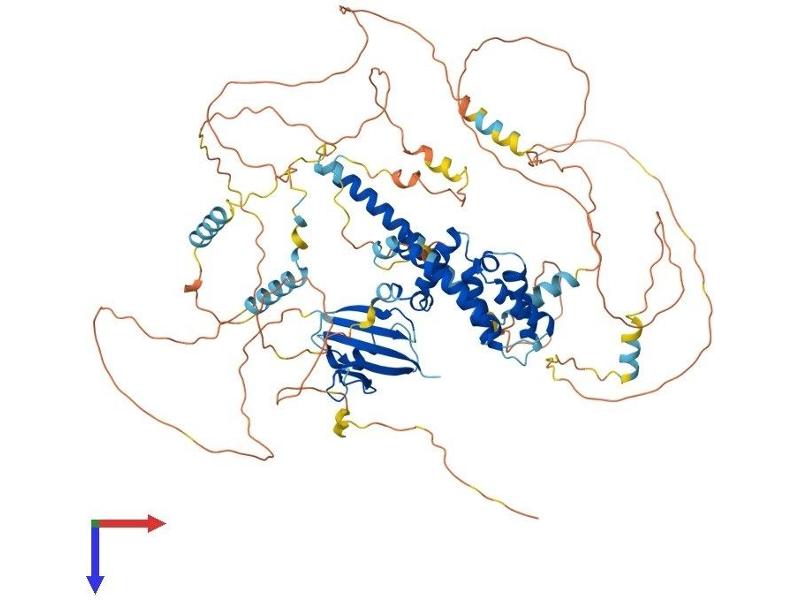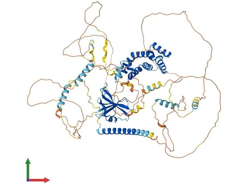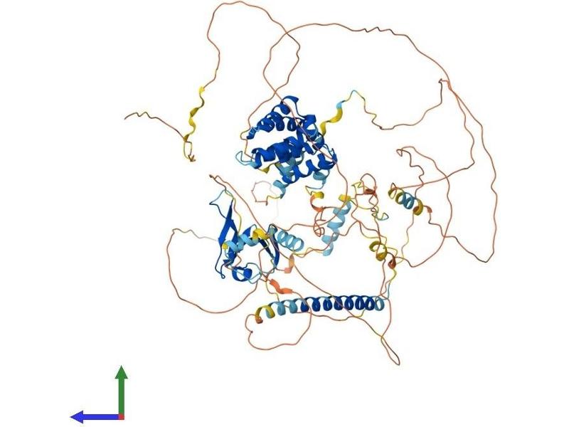 The Axin-related protein, Axin2, presumably plays an important role in the regulation of the stability of beta-catenin in the Wnt signaling pathway, like its rodent homologs, mouse conductin/rat axil. In mouse, conductin organizes a multiprotein complex of APC (adenomatous polyposis of the colon), beta-catenin, glycogen synthase kinase 3-beta, and conductin, which leads to the degradation of beta-catenin. Apparently, the deregulation of beta-catenin is an important event in the genesis of a number of malignancies. The AXIN2 gene has been mapped to 17q23-q24, a region that shows frequent loss of heterozygosity in breast cancer, neuroblastoma, and other tumors. Mutations in this gene have been associated with colorectal cancer with defective mismatch repair. [provided by RefSeq, Jul 2008].