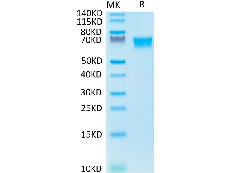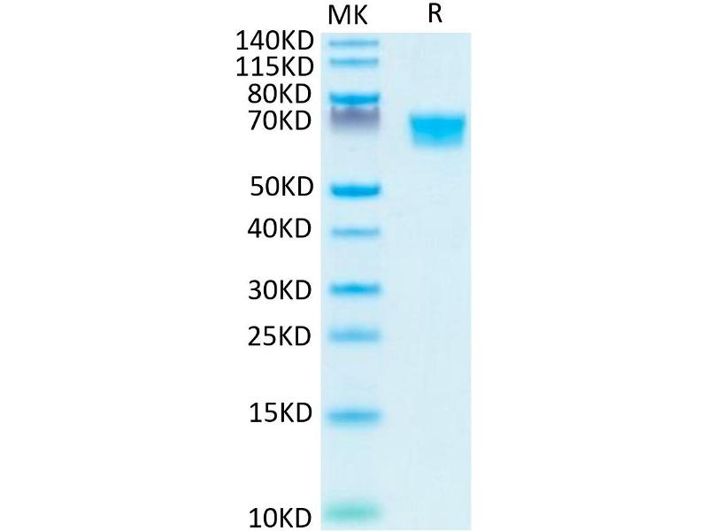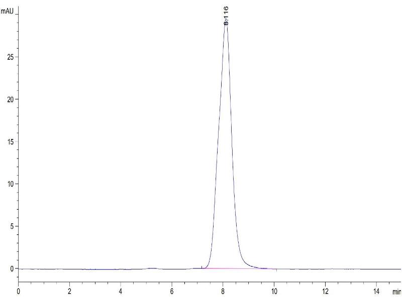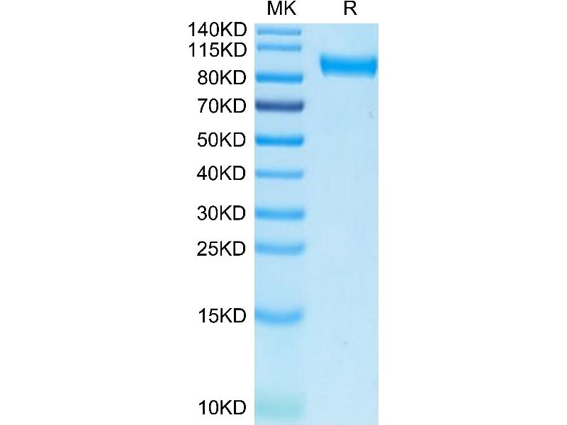 The purity of the protein is greater than 95 % as determined by SDS-PAGE and Coomassie blue staining.