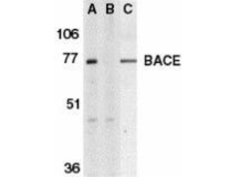BACE1 适用: 大鼠 WB, IHC, IP, ICC 宿主: 兔 Polyclonal unconjugated
