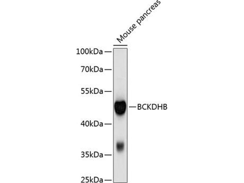 Branched-chain keto acid dehydrogenase is a multienzyme complex associated with the inner membrane of mitochondria, and functions in the catabolism of branched-chain amino acids. The complex consists of multiple copies of 3 components: branched-chain alpha-keto acid decarboxylase (E1), lipoamide acyltransferase (E2) and lipoamide dehydrogenase (E3). This gene encodes the E1 beta subunit, and mutations therein have been associated with maple syrup urine disease (MSUD), type 1B, a disease characterized by a maple syrup odor to the urine in addition to mental and physical retardation, and feeding problems. Alternative splicing at this locus results in transcript variants with different 3' non-coding regions, but encoding the same isoform. [provided by RefSeq, Jul 2008].