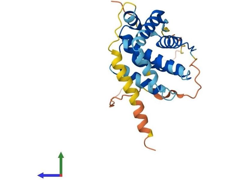 This gene encodes an integral outer mitochondrial membrane protein that blocks the apoptotic death of some cells such as lymphocytes. Constitutive expression of BCL2, such as in the case of translocation of BCL2 to Ig heavy chain locus, is thought to be the cause of follicular lymphoma. Two transcript variants, produced by alternate splicing, differ in their C-terminal ends. [provided by RefSeq, Jul 2008].