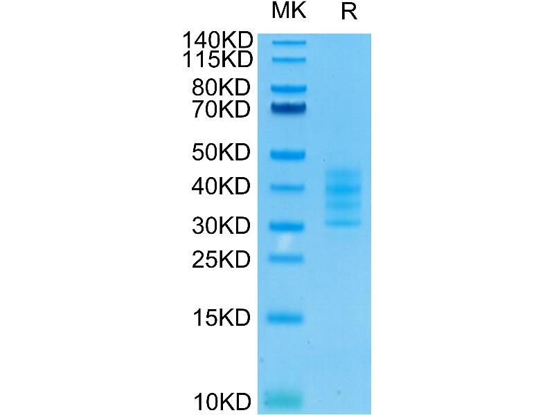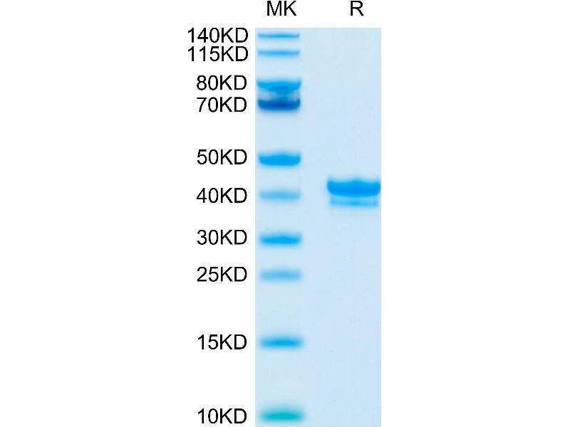The purity of the protein is greater than 95 % as determined by SDS-PAGE and Coomassie blue staining.