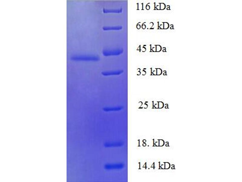 The purity of the protein is greater than 95 % as determined by SDS-PAGE and Coomassie blue staining.