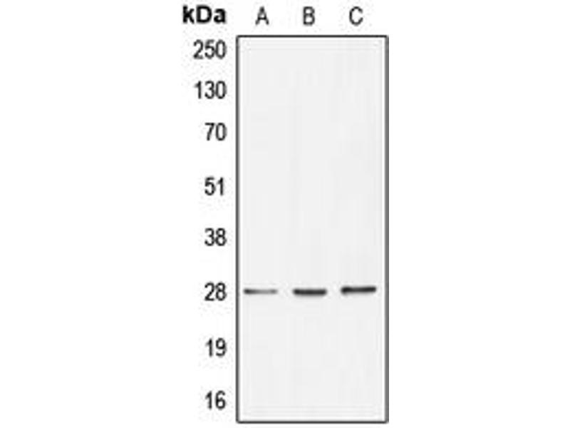 BRMS1 适用: 人, 大鼠, 小鼠 WB, ELISA, IHC (p), IHC (fro) 宿主: 兔 Polyclonal Biotin