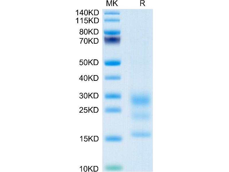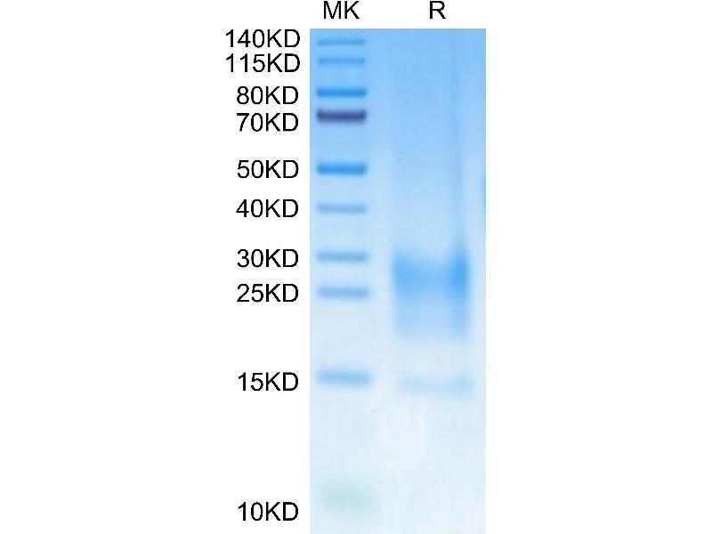 The purity of the protein is greater than 95 % as determined by SDS-PAGE and Coomassie blue staining.