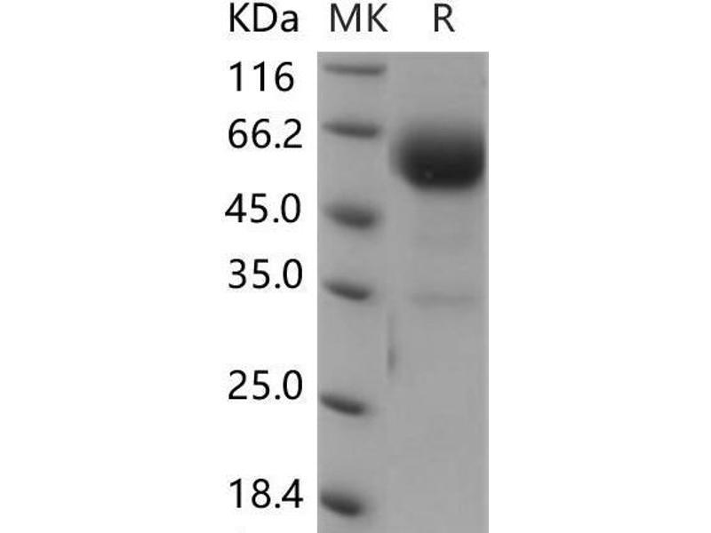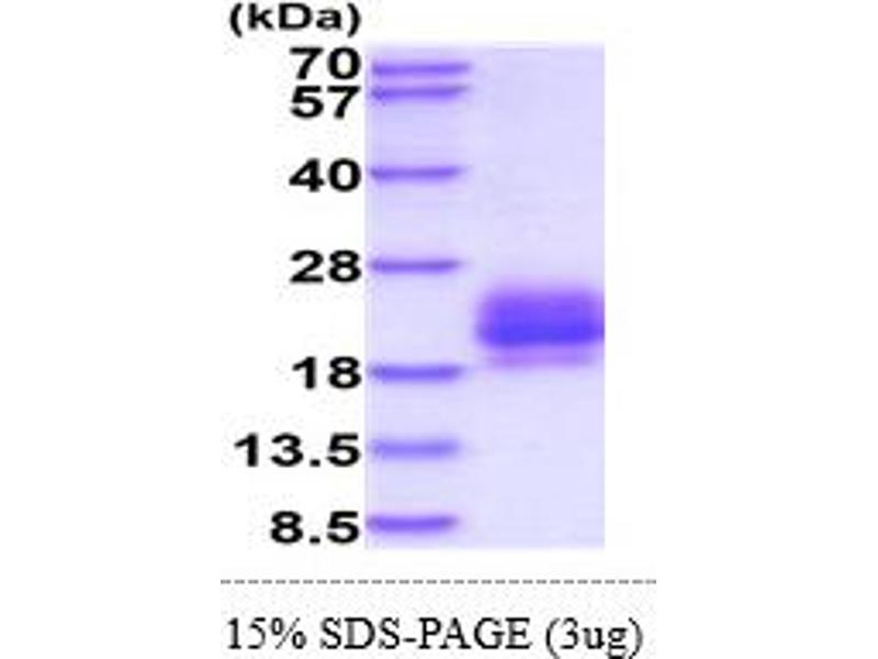 The purity of the protein is greater than 95 % as determined by SDS-PAGE and Coomassie blue staining.