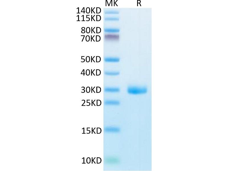 The purity of the protein is greater than 95 % as determined by SDS-PAGE and Coomassie blue staining.