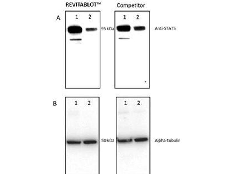 Background: Revitablot™ Western Blot Stripping Buffer is a uniquely formulated, ready-to-use reagent specifically designed for western blotting. Revitablot™ Western Blot Stripping Buffer is faster and more efficient at stripping of primary and secondary antibodies,