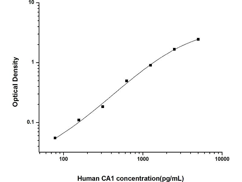 CA1 适用: 人 Colorimetric Sandwich ELISA 1.56 pg/mL - 100 pg/mL Cell Lysate, Plasma, Serum, Tissue Homogenate