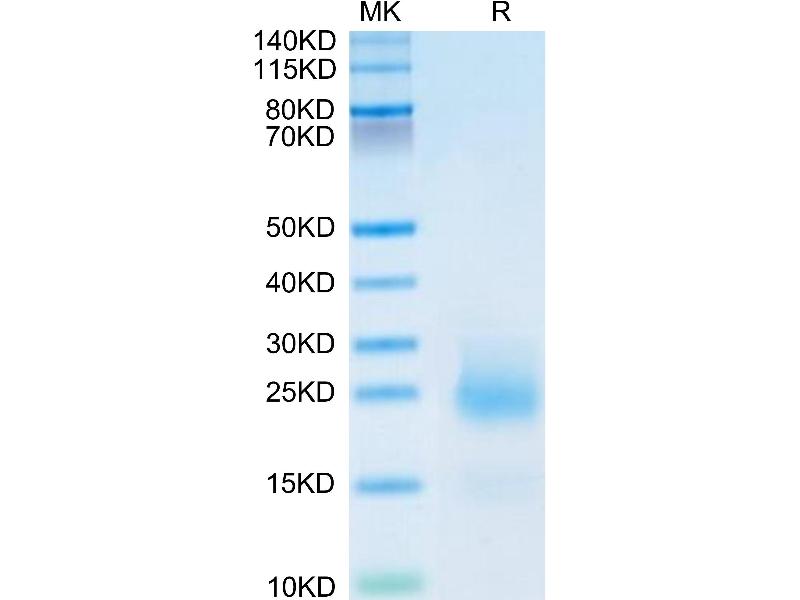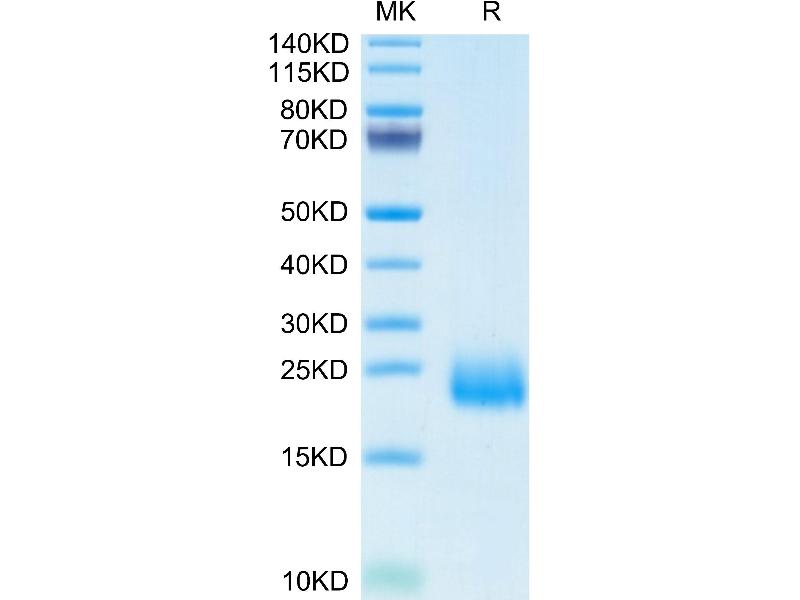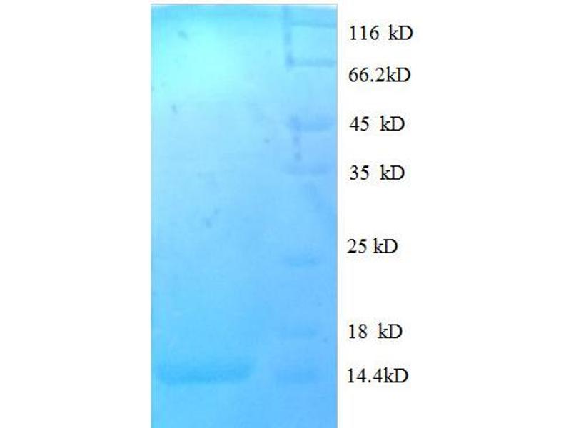 The purity of the protein is greater than 95 % as determined by SDS-PAGE and Coomassie blue staining.