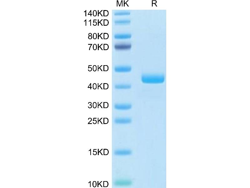 The purity of the protein is greater than 95 % as determined by SDS-PAGE and Coomassie blue staining.