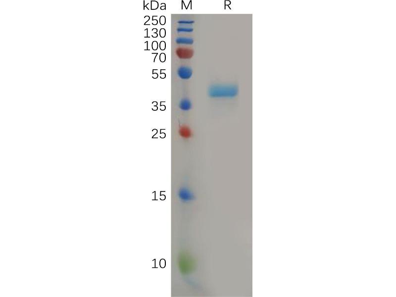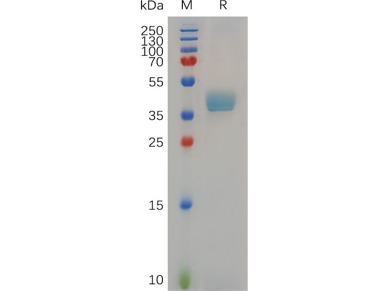 The purity of the protein is greater than 95 % as determined by SDS-PAGE and Coomassie blue staining.